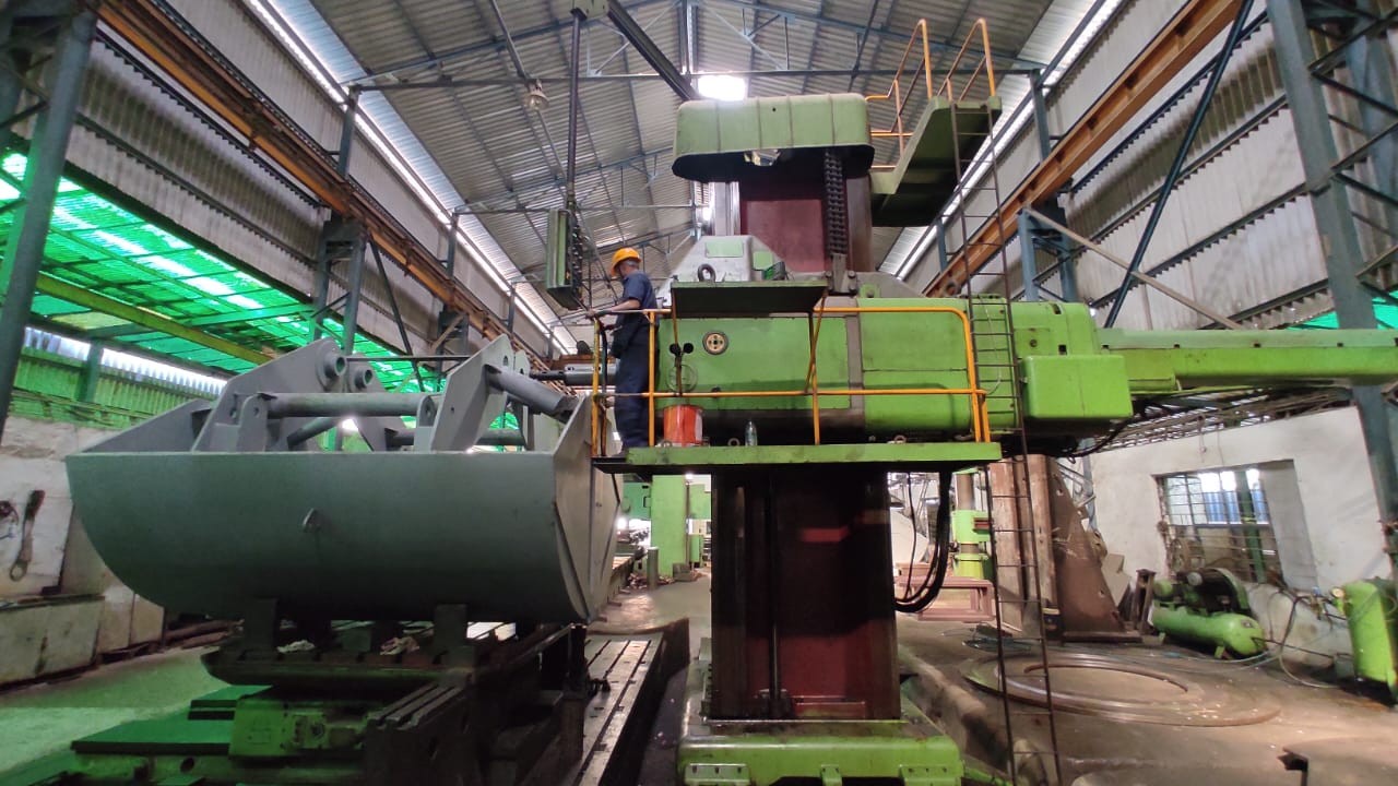 A horizontal boring machine is used for boring holes in large and heavy components, ensuring accuracy in machining industrial equipment.